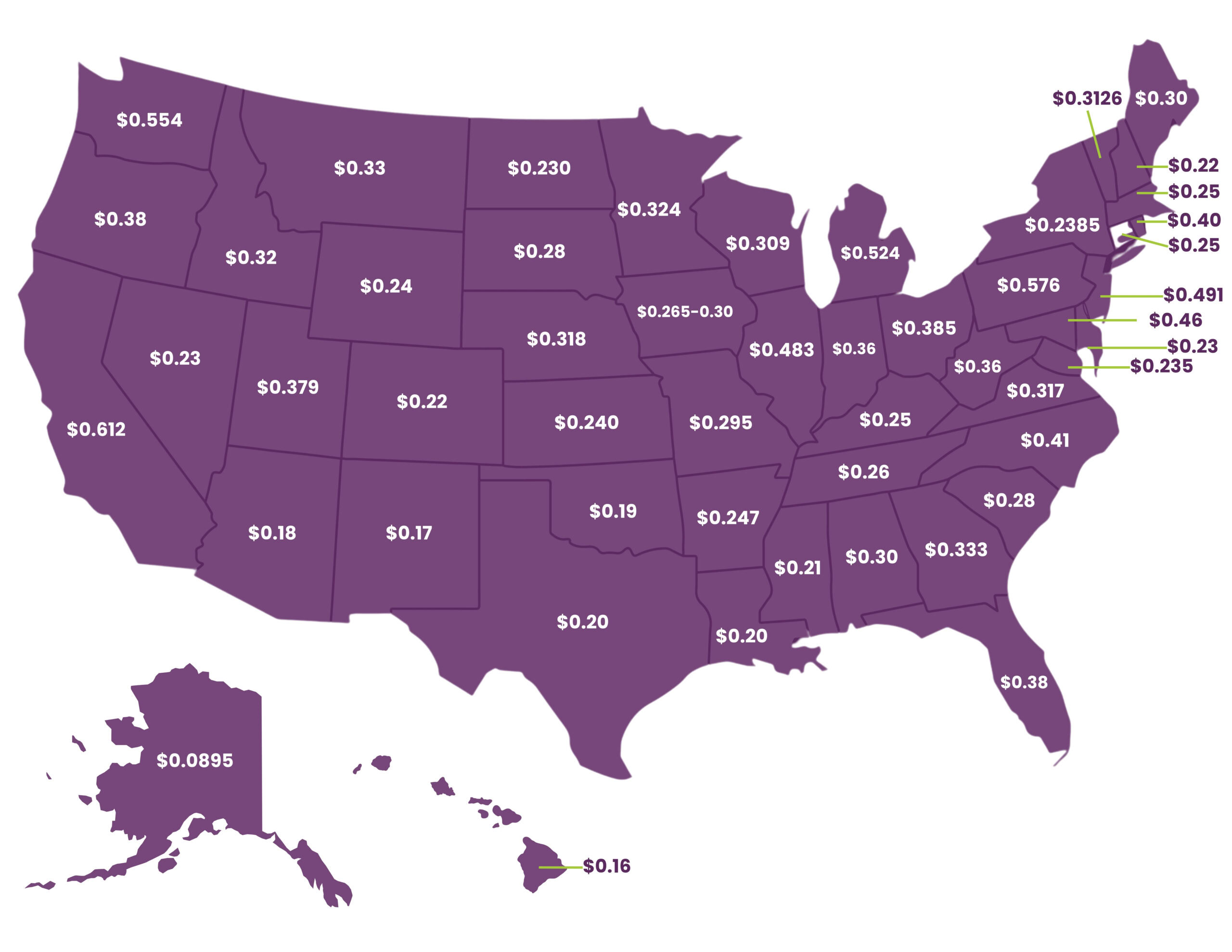 | Hawaii | $0.16 / gallon |